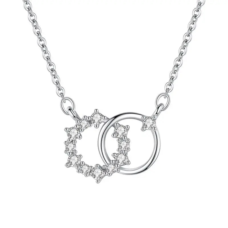925 Sterling Silver Cubic Zirconia Double Rings Pendant Necklace