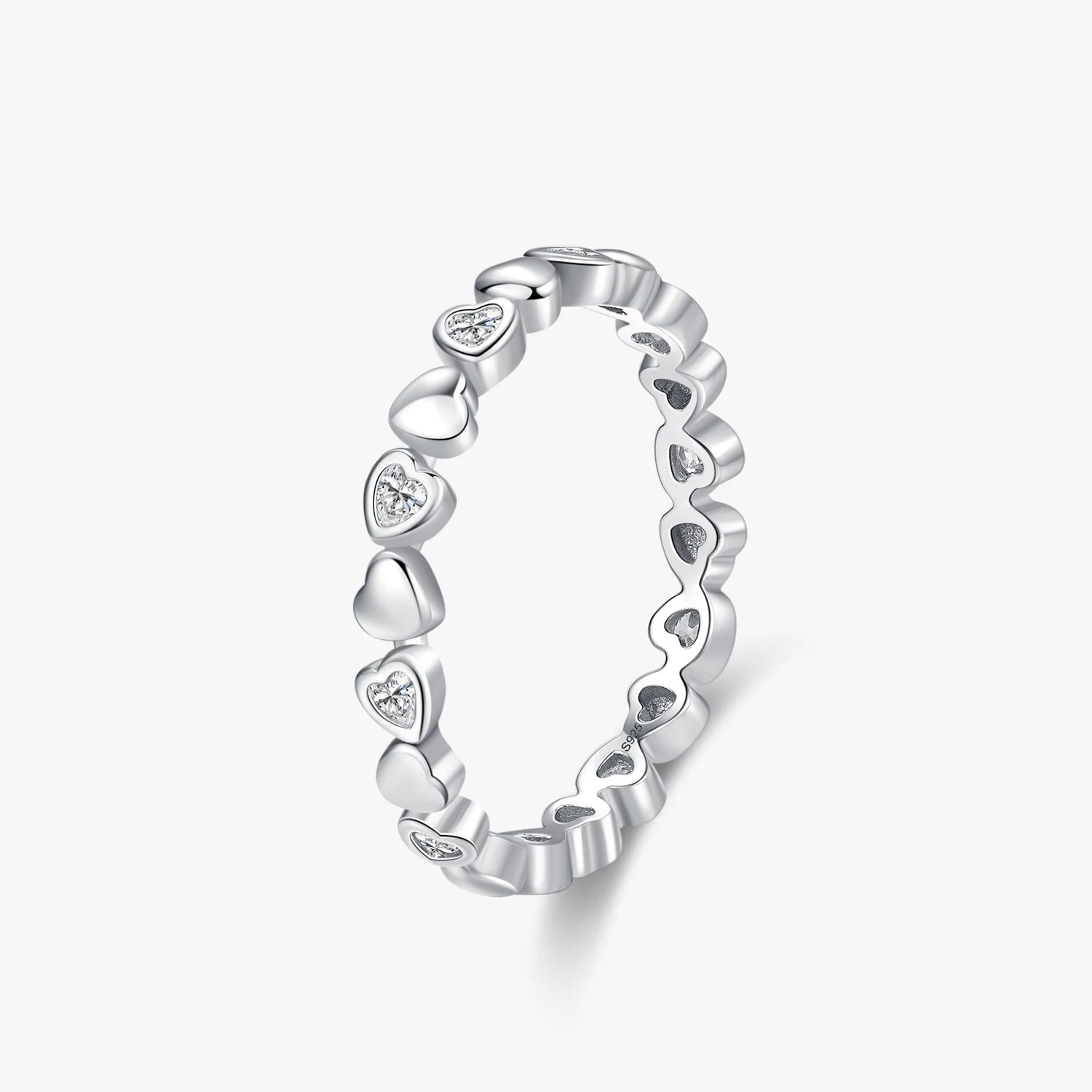 925 Sterling Silver Charm Romantic Heart Zirconia Finger Rings