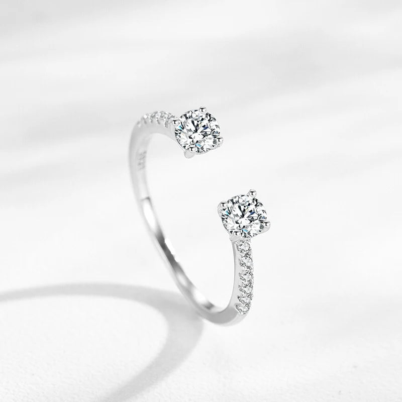 925 Sterling Silver Elegant Round Zircon Adjustable Finger Ring